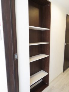 廊下に出た所にはまたまた収納棚が!収納が多いのはほんと嬉しいですよね。こちらにはストック品や掃除機などが入りそうです。