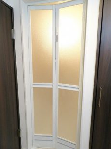 廊下正面にあるスリッドガラスの扉です。光を感じるLDKが~
