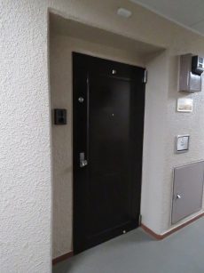 こちらがエントランス前。広々としており、家族同士がすれ違ってもぶつかることがなさそうです。正面の壁裏は集合ポストになっています。