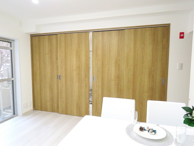 リビングの隣りには5.8帖の洋室があります。写真ではベッドルームとして使っていますが、 スライドドアを開けたままにすれば、大きなリビングが出来上がりますね!(^^)!