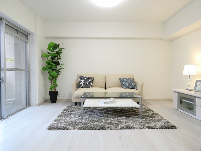 廊下の先には10帖のリビングがあります。フローリングもクロスもホワイト基調なので、とっても明るく清潔感溢れる空間でした☆