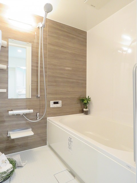 追い焚き機能付きユニットバスはワンタッチでお風呂を沸かせます。そのまま保温もしてくれるのでいつでも温かいお風呂に入れますよ。