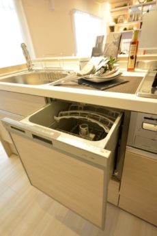 収納はスライド式収納になっています。奥に仕舞ってある物も取りやすく入れやすい!使い勝手の良い収納ですね。そして家事の助っ人☆食器洗浄機付きです。水道代も節約できそう!