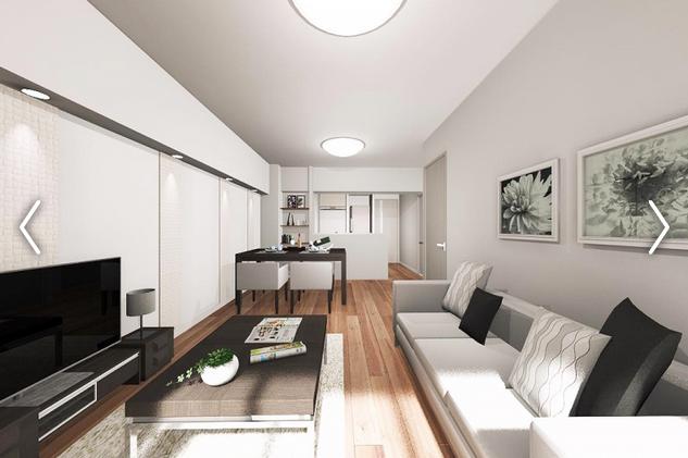 完成イメージです。約16.8帖のゆったりとしたLDKは南向き。あたたかな陽ざしが感じられる空間です。縦長で家具の配置もしやすそうです。