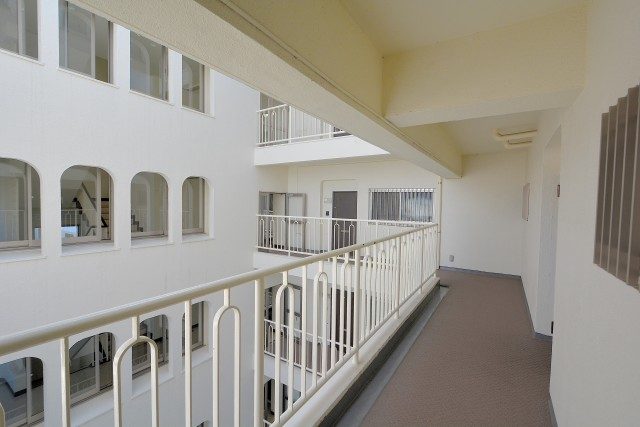 各フロアは外廊下になっているので、台風の日は駆け抜けてください。