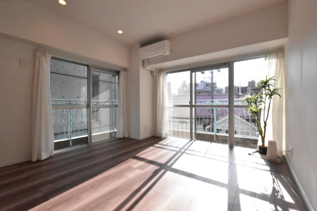 こちらが南側。ここにも西からの光が入ってきていますね。前には建物が建っていますが同じくらいの高さなので空も見えます。