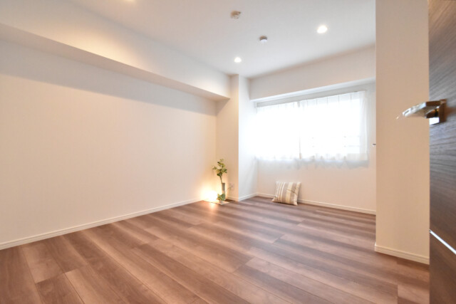 南向きの窓があるお部屋です。寝室として十分な広さがあり、シングル2台や1台ならキングサイズでも置けそうですよ。