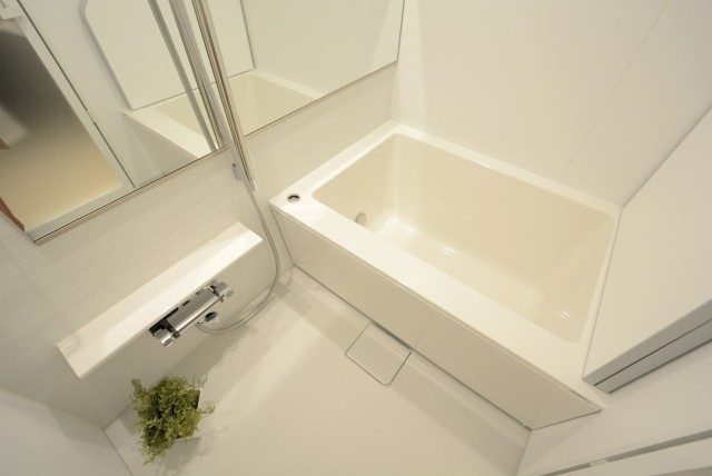 追い焚き機能付きユニットバス。「ふろ自動」ボタンひとつ押すだけでお風呂を沸かすことが出来ます。そのまま保温してくれるのでいつでも温かいお風呂に入れますよ。