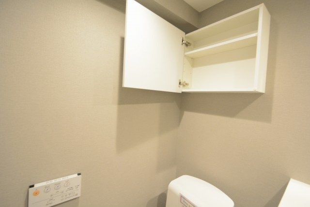 上には吊棚が設けてありますので、トイレットペーパーなど、消耗品のストックをこちらへどうぞ^^
