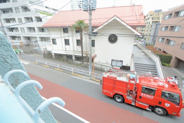 こちらは西側のバルコニーからの眺めです。すぐ前の建物は行人坂教会。いつも神様に見守られている感じですね(*^^*)