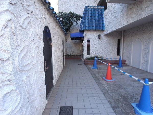 白い壁に波の形(?)の模様がなんとも可愛らしく、青い屋根がリゾートマンションのような雰囲気を作り出していました。