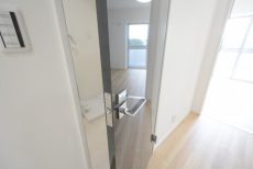 玄関ドア横にはモニター付きインターホンが設置されていて、お部屋の中から訪問者を確認する事が出来ます。映像を見てから応対するかを決められるので安心ですね。