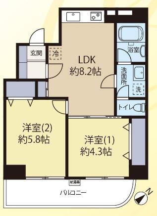 こちらが約8.2帖のリビング・ダイニング・キッチン+約4.3帖の洋室となります。