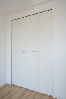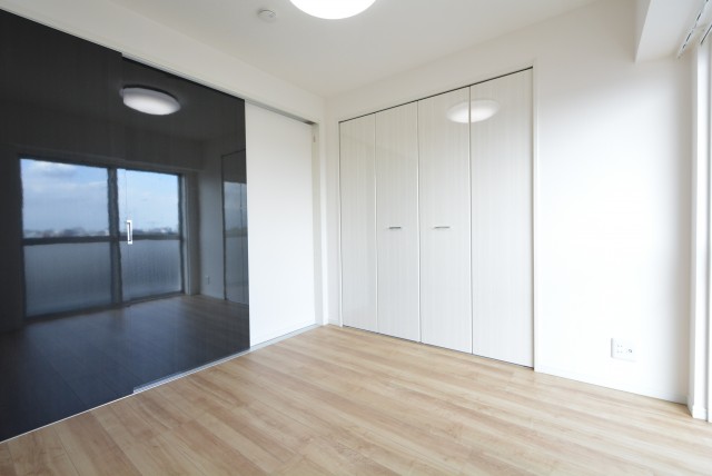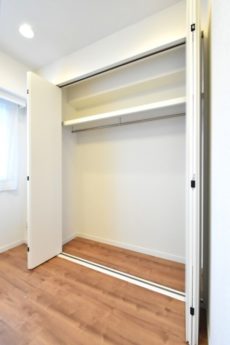 仕切りの引き戸を全開にすれば隣のLDKとつなげて使用可能。状況によっても使い分けができて便利ですよ。壁いっぱいの幅があるクローゼットは、間口が広くてとても使いやすそうです。