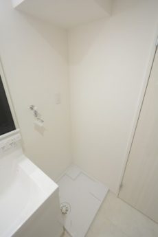 洗面室には洗面台の他に、洗濯機スペース、浴室、トイレがまとまっていて、脱衣所も兼ねています。
