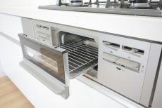 コンロの下にはグリル付き。「魚焼きグリル」と呼ばれるくらい魚イメージが強いですが、実はどんなお料理にも使えるんですよ。レシピもたくさん出回っていますので、ご興味のある方は是非調べてみて下さい。使う時は換気扇をお忘れなく!