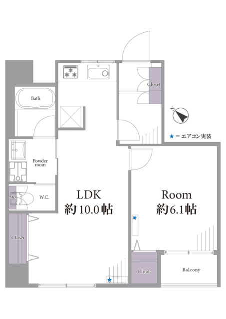 このお部屋には大きな大きなクローゼットが付いているので、収納場所には困らないので、広々&のびのびお使い頂けます♪