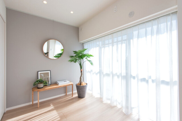 こちらは約6.1帖の洋室。南西向きのバルコニーに面したお部屋です。シンプルな色使いのおかげで、家具も合わせやすそうですね。