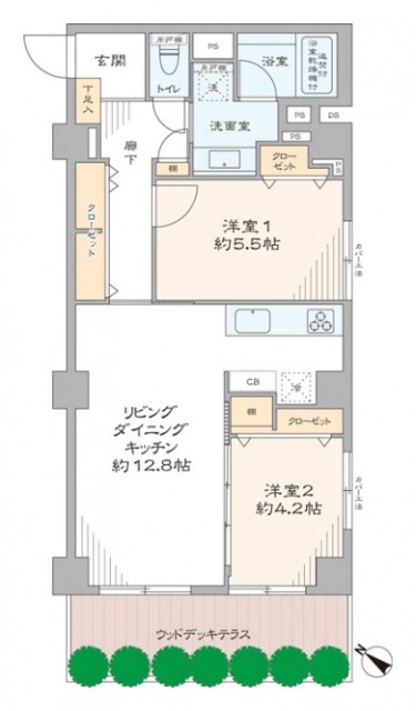 縦長の形に入口からバルコニーに向かってキッチン、ダイニング、リビングと並べるオーソドックスなタイプ。家具のレイアウトに悩むことはなさそうです。