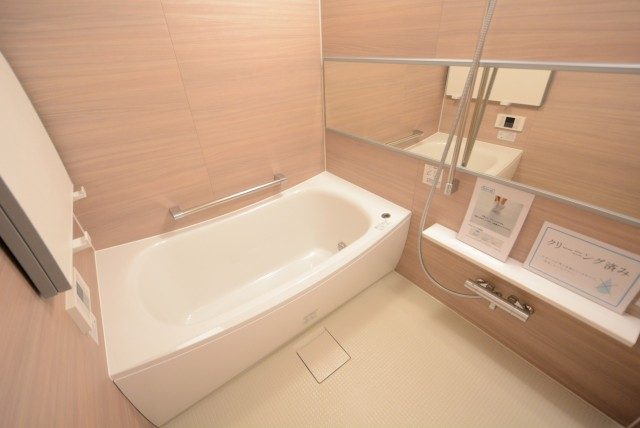 横に長いミラーには空間を広く見せてくれる効果があるので、実際のサイズ以上に浴室に余裕を感じることが出来ます。