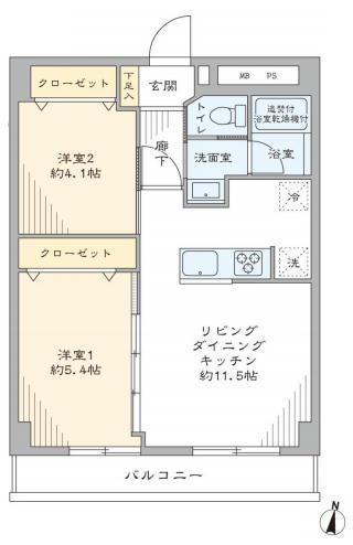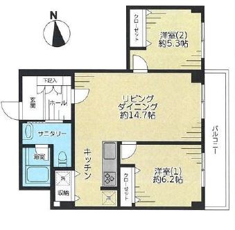 間取りのご紹介です。2LDK、専有面積は45.20㎡。