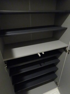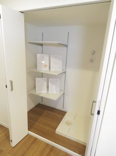 あけてみると中は可動棚の収納と洗濯機置場になっていました。
