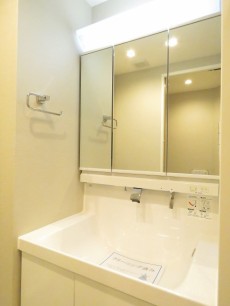 洗面化粧台は鏡の裏、洗面ボウルの下と収納スペースが豊富。