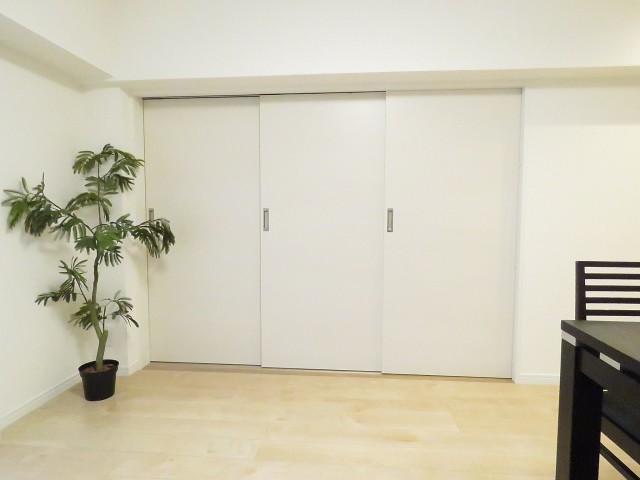 もう1部屋の洋室はリビングと3枚の可動扉で仕切られています。