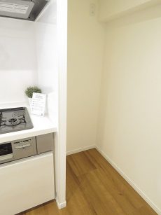 冷蔵庫は一番奥のスペースに置けるようになっています。