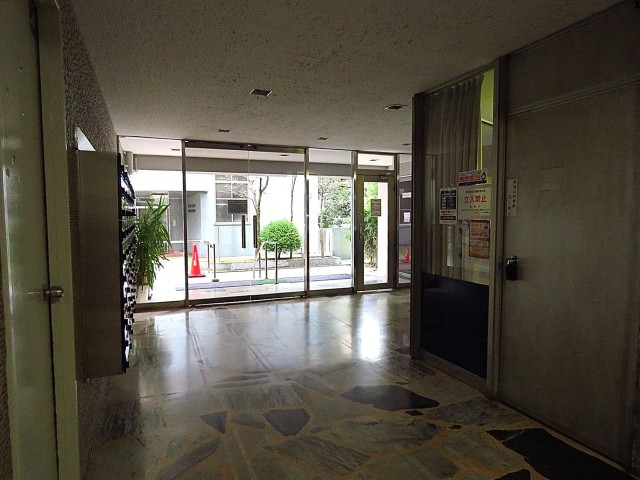 エントランス。日中は管理人さんがおり、夕方17時~翌9時まではオートロックになるので防犯面も安心。防犯カメラも設置されていますね。