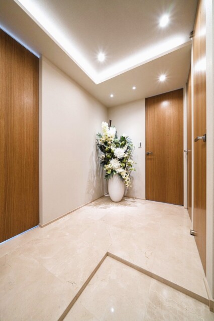 フロントサービスのある、ホテルライクな広々としたエントランスホール。