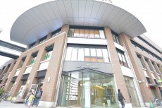 商業施設のエントランス。飲食店などいろいろなお店が入っています。