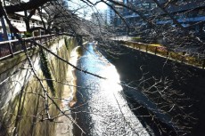 中目黒といえば目黒川沿いの桜が有名。春には多くの見物客でにぎわいます。