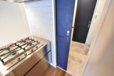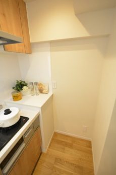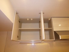 上部には耐震ラッチ付の吊戸棚がありました。お気に入りの食器を安心して お片づけしておけますね。
