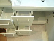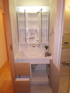 最初開け方が分かりませんでしたが、洗面台下は上辺を軽く押すと扉が手前に開きます。