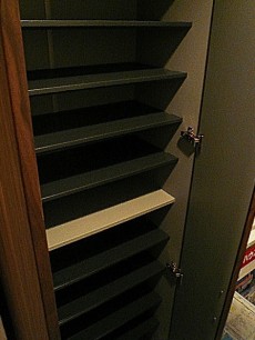 中はこんな感じ。奥行はそれほどありませんが、扉9枚分となにぶん幅が凄いです!・・・なるほど、靴もここに入れればいいんですね。納得です(^^)