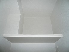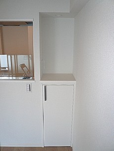 LDKにあるカウンター部分、上部には電話などが置けそうです。下部は収納スペースです。