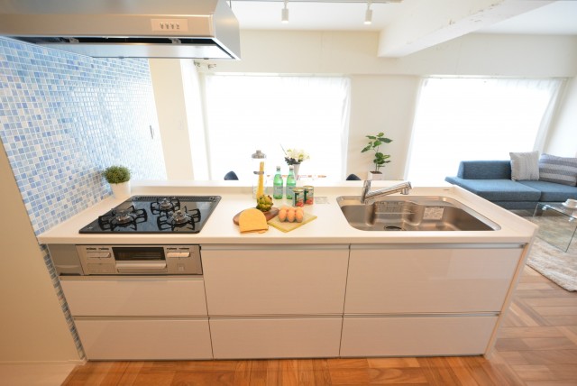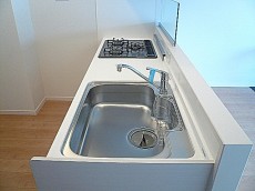 コンロは3口、水栓に浄水機能付きとスペックもグー。