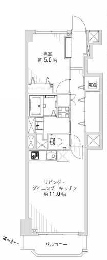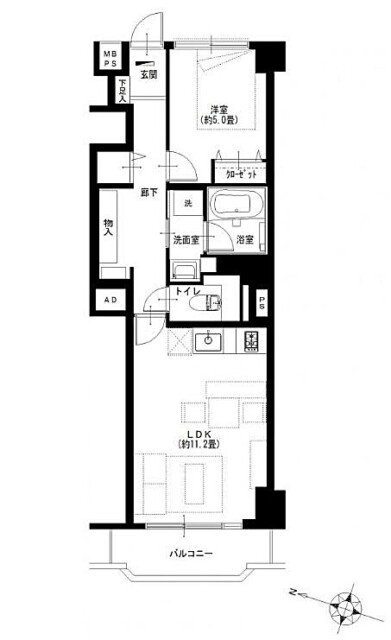 今回ご紹介するお部屋は5階、間取りは1LDK、専有面積は46.74㎡。おひとり暮らしやDINKSの方におススメのお部屋です。では、早速行ってみましょう。