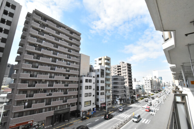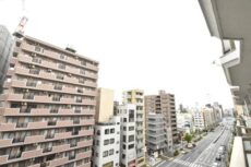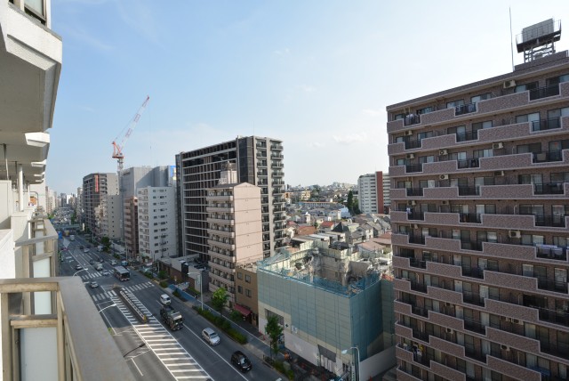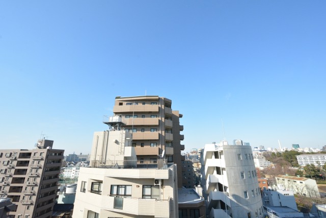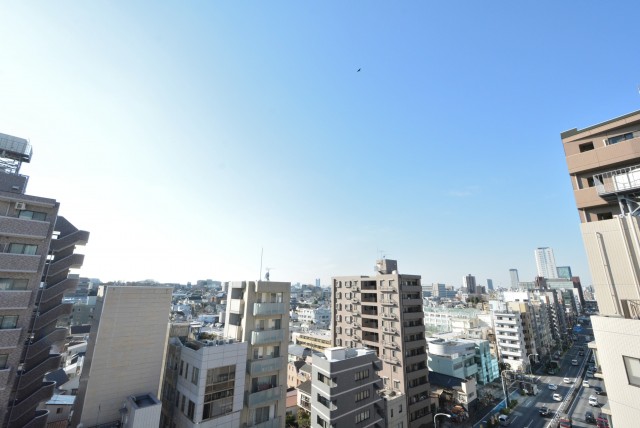 8階からの眺望です。周囲には高い建物が建ち並んでいますが、山手通り挟んでの距離と8階という高さからの眺望は窮屈間も感じないぐらいです。