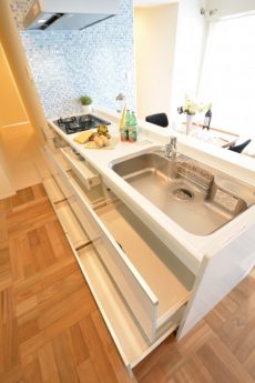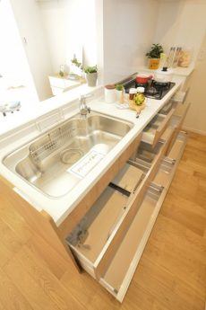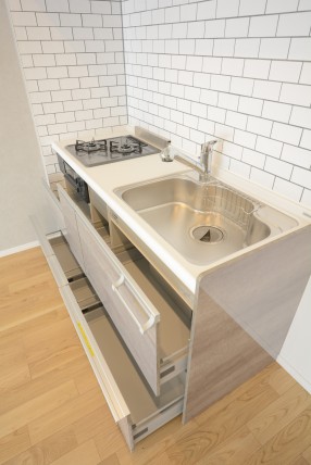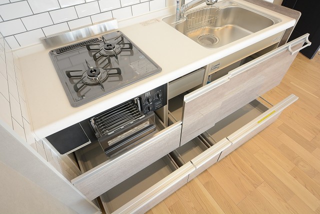 スライド収納でキッチングッズの出し入れもしやすく使い勝手がよさそうです。
