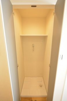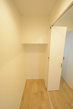 ウォークインクローゼット並びに洗濯機置き場があります。棚もありますので洗濯洗剤や柔軟材はこちらに置けますね。