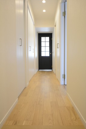 玄関は横に伸びているので戸口から見えるのは壁だけ。宅配便やフードデリバリーなどの利用機会も増えている昨今、プライバシー的には嬉しい造りですね。なんか違和感を感じていたのですが、今判明しました。シューズボックスがありません!!ま~これだけ三和土が広ければなくてもいけそうですが・・・