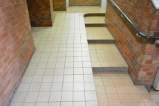 エレベーターまではスロープになっており、ベビーカーやお買い物のカートなどもラクラク運ぶことができます。