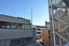 玄関前からは共用階段の向こう側に目黒警察署の建物が見えます。
