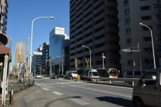 目指すマンションは中目黒駅から徒歩11分。山手通りをアトラスタワー(駅前のタワーマンション)がある方向へまっすぐ歩いていくと到着します。徒歩の他にバス乗車2分、下車1分という手もあります。雨の日や疲れた日はバス利用もいいかも。
