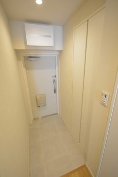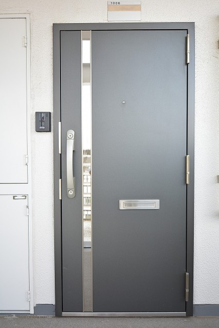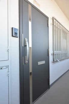 築年数から考えると玄関扉がだいぶ綺麗なので、大規模修繕工事で新しくしたのだと思われます。ドア横にはモニター付きインターホンが設置され、室内に居ながらにして玄関前を確認することが可能。お料理などで手が離せない時などにとても重宝します。