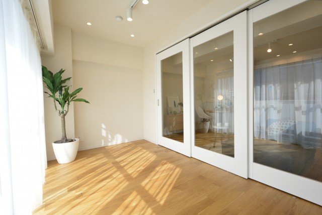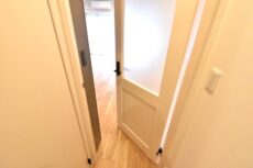 廊下左側にある洋室5.7帖です。曇りガラスの窓からは光も入り明るいお部屋です。