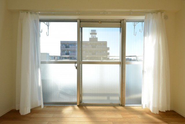 バルコニーへの窓にはインナーサッシが設置され、防音性や断熱性を高めてくれています。前が山手通りですからこれは嬉しいですね。