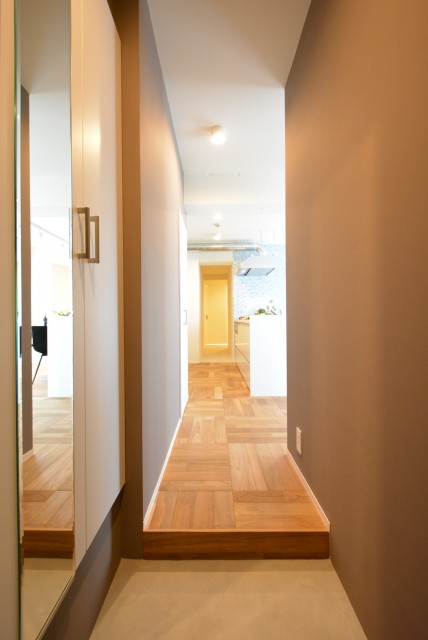 玄関へのドアが遠くに見えて、このレイアウトには広く見える効果もあるようです。
